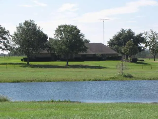 REGAL SETTING...25 acres atop a hill, surrounded by trees, overlooking a large, private lake. Property has a 4-stall horse barn, tack room, feed room and storage for trailers, etc. The home has 4 bedrooms, 3 baths, 2 living areas, fireplace, formal dining room, and a large, open kitchen with breakfast room. Lots of details...such as picture frame paneling, trey ceilings, and an antler chandelier in formal dining. Wonderful landscaping, gunite pool with hot tub, open and covered patios, pipe fencing and paved drive.