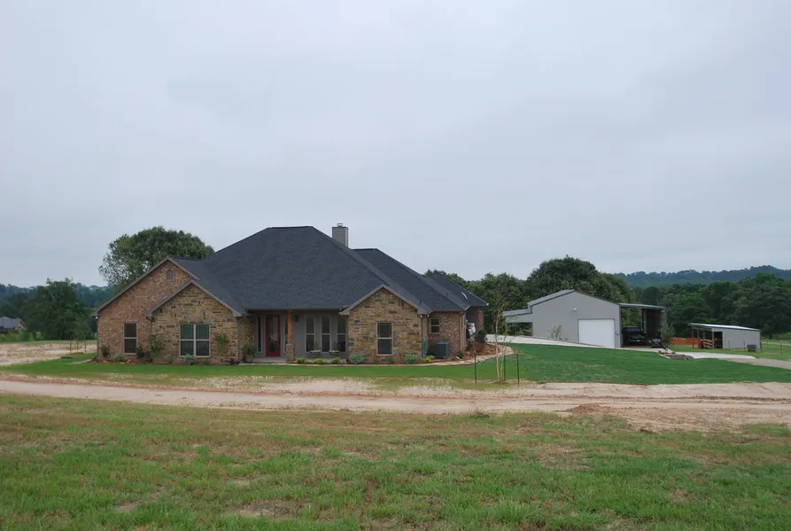 Listen up :) Custom built home in 2014 on 5.496 AC, shop, barn, water view on small, 8 acre gorgeous lake-Savannah Shores. Close to I20, close to the Airport, Lindale Schools, and a country feel! 4/2/with a 2 carport, (carport is wonderful for covered entertaining). Home looks out to the lake, perfect spot to build a pool. Kitchen is large and opens to butler's pantry, utility, formal dining and family room. Granite, SS appliances, large island with seating, Stone FP, wood flooring, and immaculate! Master Bath is gorgeous with walk in shower and jetted tub. All electric, 2 HWH, and 2 AC/Heat pumps. Shop-30 x 40, Heat/cooled, Full bathroom/shower, W/D connections, 1 bay door, control that opens door from house or shop, wrap around porch and RV parking along with electric/water/septic. Horse Barn also (16 x 30), lot 6 next door is 1.763 AC, ready to build with house pad and water line. You have got to come see this property, it will just make you HAPPY!