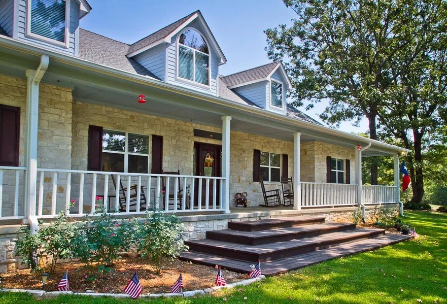 Need a little breathing room?! Find it here in this custom Austin stone home situated on a hilltop with pipe fencing surrounded by 14 beautiful acres with 60% coverage of lovely mature hardwoods, walking trails and some open pasture space as well. Enjoy the view on your 1,000 square foot wrap style porch that covers three sides of the home or enjoy a relaxing soak in your Leisure Bay Spa hot tub. Inside there is an abundance of space! Large great room with vaulted ceiling, a beautiful stone WBFP -which has a thermostat controlled variable speed blower and flanked by floor to ceiling windows! 9 Ft ceilings