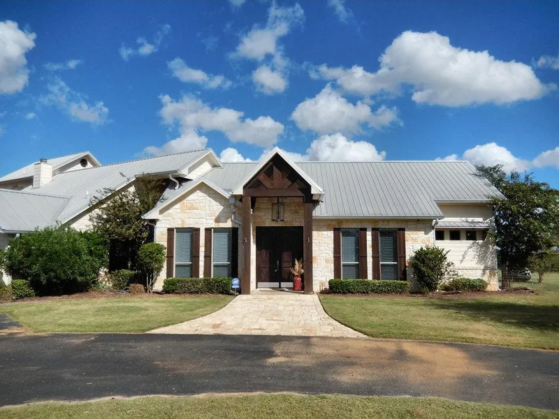 This Stone & Cedar Home for sale in the Hills & Trees of East Texas on 12+ acres is move-in ready & waiting for you! With 3437 sq. ft., this 3 bdrm, 3 bath ranch home for sale has upstairs bonus room plus an amazing 40 x 30 shop. Enter the home through double wooden doors that open to an entry with vaulted and beamed ceiling. On the left is the inviting dining area w/stone columns. Sliding barn-style doors on the right provide privacy to the office & wood trim adds the Texas style throughout this custom home. Straight ahead is the sitting/breakfast area overlooking the landscaped pool w/ waterfall & picturesque rolling acreage beyond. Step into the charming kitchen w/country red cabinetry, granite counters, cedar accents and walls, corrugated tin ceiling, breakfast bar & stainless steel farmhouse sink. Visit with your family and guests at the breakfast bar that opens to the spacious f...