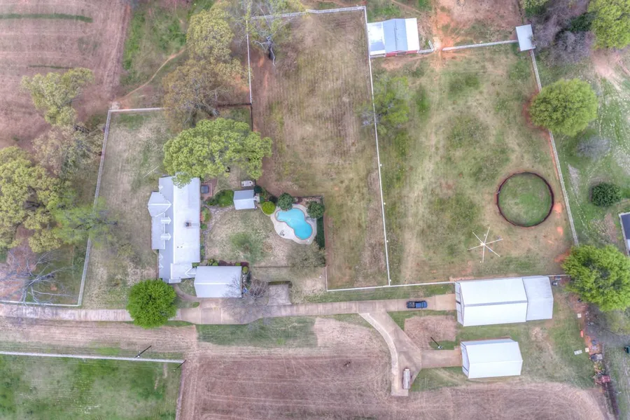 This executive farm has a beautiful ranch home located on 22+ acres. The outdoor kitchen and swimming pool coupled with the small lake, 6 stall horse barn and riding arena offer entertainment options not found on many other rural small tracts. This farm has an extensive irrigation system that waters the coastal and Tifton 85 bermuda grass fields which historically produce 4,000 square bales of hay. The concrete driveway, privacy gate, windmill and pipe and V wire fencing add to the ambiance. There are two large barns and a shed. There are two wells that pump into the lake and then a 20 hp pump that pumps water from the lake into the irrigation system.
