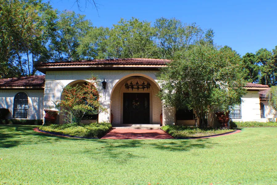 Tucked away in the gorgeous pines of East Texas is this gorgeous ranch with beautiful pastures & a perimeter of mature trees separating it from the outside world. Once you wind up the concrete driveway you see the sprawling Spanish style home with a manicured yard. A large courtyard & back porch allow you to throw amazing parties for friends & family. As you enter the home, you are greeted with a wall of windows & cathedral ceilings in the family room. There is exquisite woodwork throughout the home & the family room is no exception! The large breakfast area & kitchen are just off the family room & lead to the formal dining & formal living, both with beautiful chandeliers & arched doorways. The master suite is in its own wing of the house with trey ceilings with woodwork & an en-suite bath that has separate vanities, separate walk in cedar closets, a massive jacuzzi tub & step in shower. The home also has an office & 5 guests rooms, each with their own bath. This one is a showstopper!