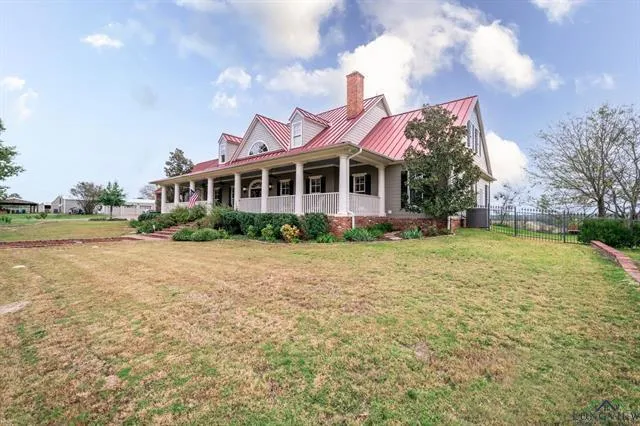 The Ranch that has it all. Located just 10 miles north of I-20. This Custom Southern Living Style home is situated atop an elevated landscape with winding paved entry and amazing views of the surrounding rolling hills and water, in the heart of East Texas. This property includes 92+ acres of pasture, woods, creeks, spring fed lake and prime hunting opportunities. Along with several other structures including a 1000-sf apartment and a 1500 -sf Barn dominium. The main home is 5152 SF of custom craftmanship. Marvin Windows and Sliding Doors along with the spray foam insulation, steel roof and cement fiber exterior siding makes for a very energy efficient, quiet and comfortable 5 bed 4 bath home. The ground floor includes the Kitchen, Great Room, Master suite, Formal dining room, Library, K9 Condo and Guest bath. The hand scraped wood plank flooring is easy on the eyes and the feet. Weather you are sitting on a porch swing on the 585-sf front porch or relaxing with a cup of coffee and a book on the composite decked 540 sf cedar beamed covered back patio, the views are breathtaking. And with the whole house propane generator, and tankless water heaters you will never be without power or hot water. For more details please see the description document.