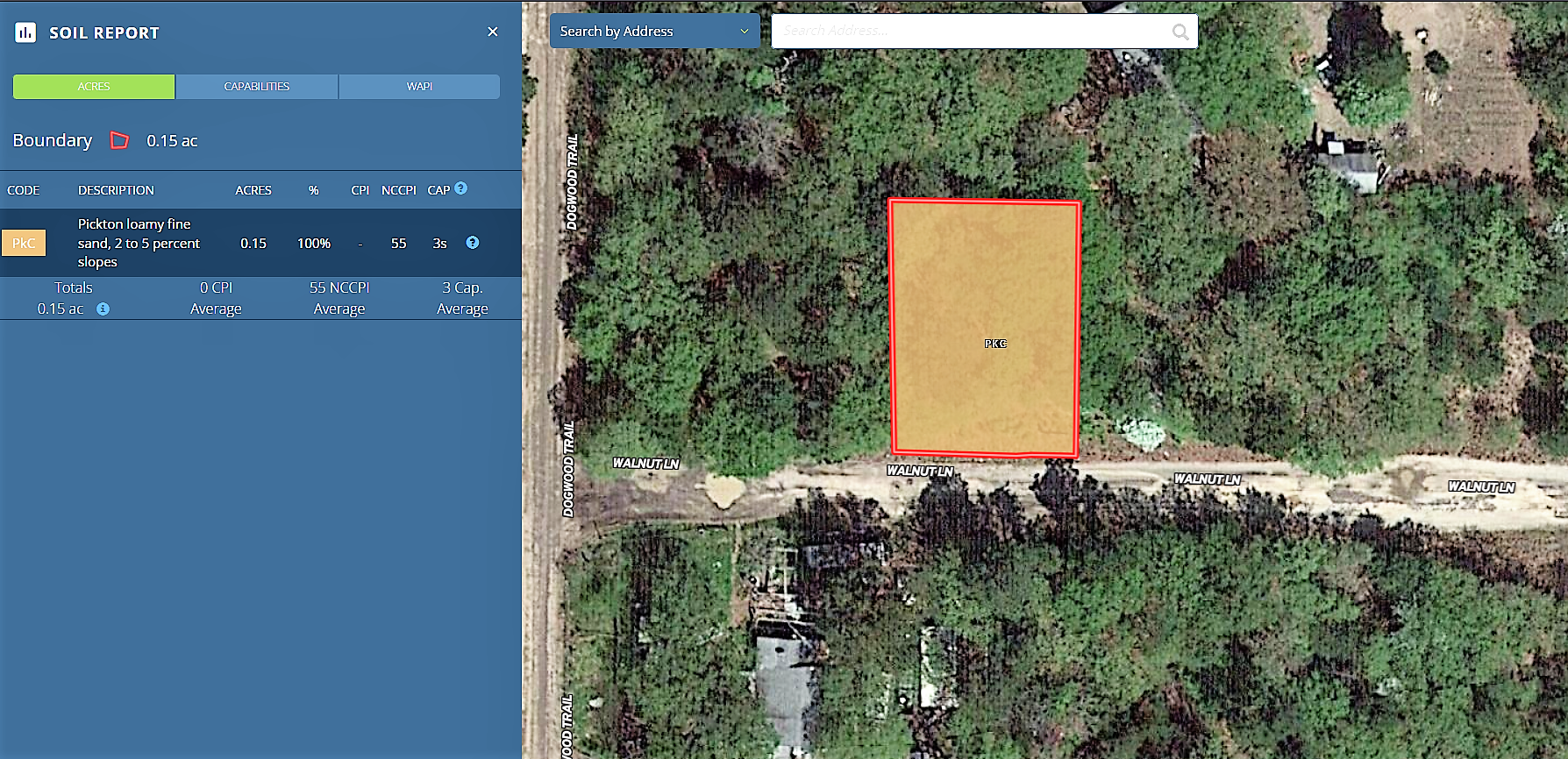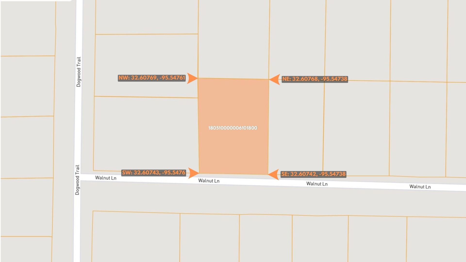 To visit this 0.15 acre RV lot for sale near Tyler TX,search Walnut Ln, Mineola, Texas, 75773 within Smith County on your phone. When you are near the land, search 32.60742, -95.54738 on Google Map to locate one of the corners. Contact our office for surveys (if available), county plat maps, Google Map boundaries and corners, and MapRight