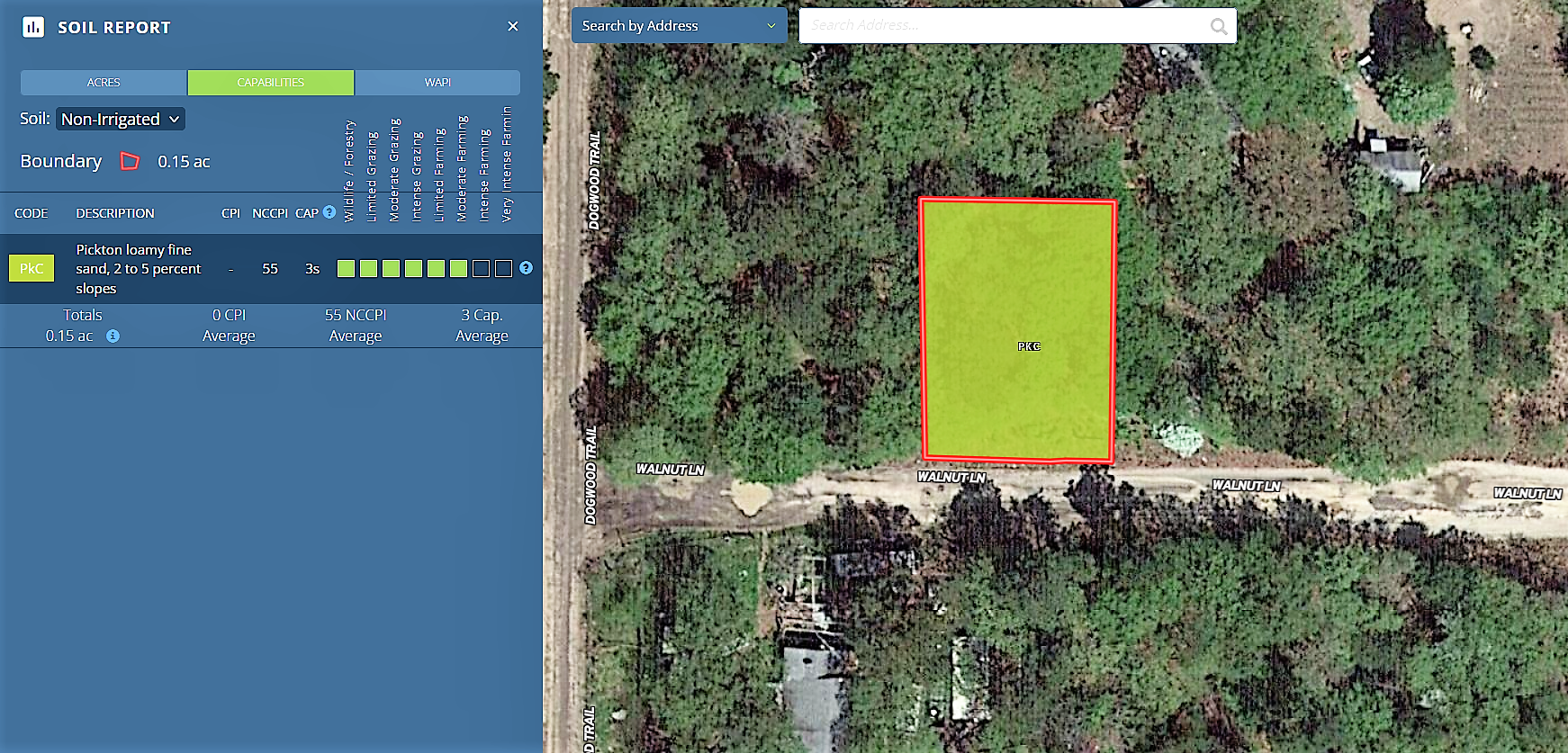 Search for detailed parcel information including; Elevation & Vegetation Maps, Ownership Information, Detailed Parcel Information, Crop History Map, Soil Survey Productivity Data, and more.