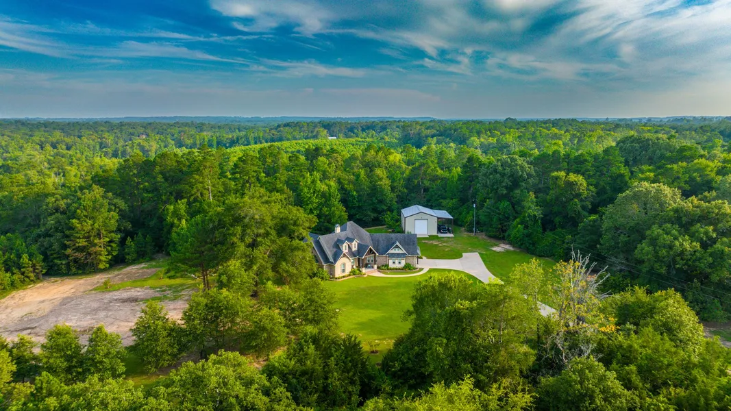 Tucked away in the lush greenery of Smith County, Texas, near the quaint communities of Winona and Lindale, lies an exclusive sanctuary spanning 70.341 acres. This intimate and private ranch, shrouded in dense woodland, offers an extraordinary escape from the bustle of the everyday world. The estate features a high-quality residence, perfectly secluded from the road and prying eyes. The home boasts 2,958 square feet of gross living area, composed of three comfortable bedrooms and two and a half bathrooms. Every room exudes a warm, welcoming ambiance, blending classic country charm with modern amenities. In addition, a safe room adds an extra layer of security to this secluded haven. The property is complete with a large, multipurpose shop that further enhances its practical appeal. Perfect for a variety of projects, hobbies, or storage, the shop provides functional space that complements the residence and the natural setting.