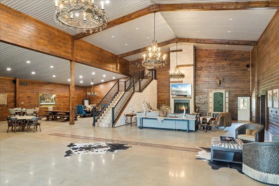Nestled on 127 acres, this exceptional luxury barndominium combines the best of country living with sophisticated, modern amenities. With 3 spacious bedrooms and 3 full bathrooms, this home is designed for both comfort and style, offering an open-concept floor plan with high-end finishes, soaring ceilings, and large windows that flood the space with natural light. Every detail, from the sleek kitchen with top-tier appliances to the spa-like bathroom, speaks to the quality and craftsmanship of this one-of-a-kind property.