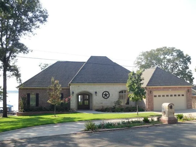 Built to please even the most discriminating buyer, this exquisite waterfront home with breathtaking views of Lake Palestine is a rarity! With approx. 7000 sq. ft. this 5 bdrm, 5 bath home has wide crown moding, 9-12' ceilings, solid oak & tile floors on main level, stained concrete floors on lower level, granite slab counters, 3' doors on all bedrooms, slate tile on back patio, 3-Rennaie water heaters, 2-central vacs, 5-18 seer central units w/HEPA filters, 2 living areas, formal dining/office, huge game room, 2 kitchens, 2 utility rooms. The main kitchen has large island with 2nd sink, stainless warming oven, convection oven, microwave/convection oven, ice machine, dishwasher, gas cooktop, and refrigerator. The downstairs 2nd kitchen has electric s/s cooktop, oven, d/w, ice machine & microwave. Garage is air conditioned and shop has central vac! Beautifully landscaped yard, brick fire...