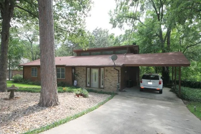 2001 Remodel - Cedar Contemporary, 3/2/1cp. Living room with vaulted ceiling, fireplace, and clear story windows. Breakfast bar in kitchen overlooks living room and alcove breakfast area. Refrigerator and stacked washer-dryer remain with sale. Bedrooms have walk-in closets + master bedroom has door to backyard. Fenced backyard, covered deck + outside storage building. Auto sprinklers in front with circular drive. 2008 roof, 2001 appliances, water heater, HVAC unit, carpet, tile, paint, etc. A really nice home.