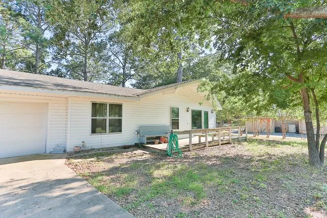 This is a charming home on a large lot. The large brick, wood burning fireplace is the focal point of the living room and the high, vaulted ceilings amplify the space. The kitchen is centered between and open to both the living room and the formal dining room. Both bedrooms are over-sized and leave you room for sitting areas in addition to your furniture. The second bedroom has built in shelving around one of it's windows. The master bedroom includes a full bath with walk-in shower and is large enough not only for your furniture and a sitting area, but also leaves room to enclose a dream walk in closet. There is also access to the covered back patio and fully fenced back yard from the master suite. The home sits near the back of the lot leaving plenty of off street parking. Several great shade trees make sitting on the long, wood front deck perfect for enjoying your morning cup of coffee! Located close to Hideaway amenities (pool, lake, park). Come see what this home has to offer!