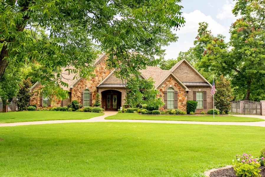 EXQUISITE custom luxury home for sale in gated Pecan Valley in Bullard, Texas! This immaculate 3200 sq. ft., 3 bedroom, 2 full and 1 half bath home is situated on a tree shaded 1.64 acre lot.Packed full of high-end details, this home is complete with 10' & 12' ceilings & hardwood floors throughout, extensive crown molding, arched doorways, and tray ceilings in living, dining, and master. Be the buyer who benefits from the dreams, plans & build of this beautiful home! Large living area with stone woodburning fireplace with ducts to heat the house, formal dining and a breakfast area, gourmet kitchen with stainless steel appliances, island with breakfast bar, gas cooking, and walk-in pantry. The master suite has a sitting room with gas fireplace and access to the back porch. Master bath boasts a double vanity, separate tub and walk-in shower, and the closet has beautiful built-ins. Back of home has inviting covered patio with crushed glass firepit and built-in seating. The highlight of this property is the INCREDIBLE fully-screened area around the stunning pool with hot tub & two waterfalls! Large backyard with lush landscaping, pea gravel concrete circle drive, 16-SEER A/C units,foam insulation in the exterior walls and roof deck, 2 tankless water heaters, low-E windows, climate controlled pet area opening to fenced yard, separate storage/shop with porch & so much more! Just minutes from the city of Bullard and within Bullard ISD!