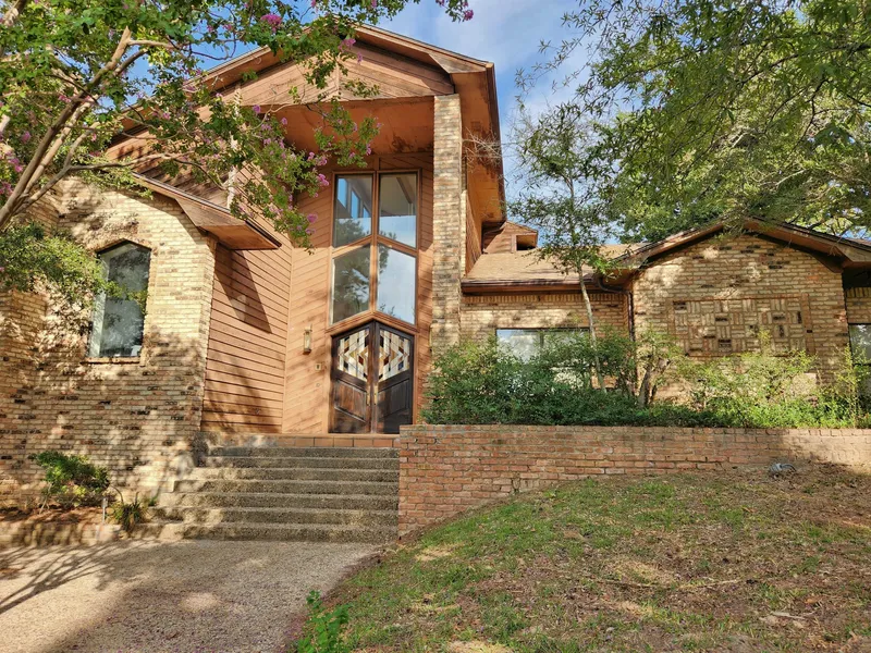 If you appreciate the beauty of architectural design and detail, this one is for you! Conveniently located in a well loved established neighborhood in south Tyler, on an oversized tree shaded lot, this approximately 4800 sq. ft. custom home has 4 bedrooms and 4.5 baths. Built for a large family or anyone who loves to entertain! Upon entering the large double doors you are in the foyer, with 30' ceiling, that accesses living and dining on one side, great room at back of home, hallway to bedrooms and stairs to bonus/game room on lower level. The great room with 23' cathedral ceiling and floor to ceiling windows allows the beauty of nature to be enjoyed from this incredible room. The adjoining spacious kitchen with vaulted ceiling, island and breakfast area has dumbwaiter to downstairs walk-out basement and an abundance of cabinetry and storage space. Additional huge living and dining area has soaring vaulted ceilings, built-in wet bar, WBFP and sunroom accessing balcony. The approximately 700 sq.ft. primary suite with WBFP accesses a tiled patio area overlooking back yard. Primary bath has separate vanities, and separate walk-in closets. All bedrooms have 10' coffered or vaulted ceilings with 2 guest bedrooms having Jack & Jill bath and one bedroom with en suite bath and cedar closet. Constructed in 1984 at an inflation adjusted price of $1.1 million, this architectural gem is extremely well built with engineered slab, three new HVAC systems, three brick WBFP's, central vacuum, new street level entry doors, many new insulated windows, and new luxury vinyl wood plank floors in kitchen and laundry room. The north facing three car finished garage has additional built-in storage and driveway has parking space for two additional vehicles. You really must see this unique home - no cookie cutter here! Wonderful opportunity for someone who appreciates character and quality!