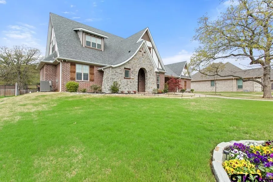 This exquisite 3-bedroom, 3.5 bath, 2594 sq ft English Tudor style home stands out in every way – from its embellished old-world Tudor entrance, to its iron stair railings and cedar timber beams, thoughtful energy saving features and tasteful luxury amenities. Vinyl plank flooring, exposed ceiling beams, and gas fireplace stonework focalize the charm of rustic simplicity. Lit stairway, new light fixtures, above counter kitchen lights, and soft close cabinets ensures you and your guests will enjoy all the attractions of modern living. Designer kitchen with quartz and quartzite countertops centers an island, breakfast bar, Energy Star KitchenAid appliances with gas cooktop, electric oven, and custom vent hood. Master suite doubles as private retreat with a large walk-in shower, double sinks, Toto toilet, and separate vanities. The upper floor guest bedrooms, office/game room, and additional sitting/living area and 2-full baths nestled under steep-pitched Tudor-style gables is a quaint sanctuary of privacy. Out of doors, the ½ acre lot is enclosed in a wood and wrought iron fence to showcase a spectacular swimming pool with waterfalls, a slide, and Pentair electric heater/chiller (filtering system uses glass thus never needs replacing) vies with an equally impressive outdoor living room – stone floor tile, masonry fireplace, cedar vaulted ceiling with four 84” ceiling fans, remote stereo speakers, and an automated screened pergola enclosure. Outdoor kitchen has DCS appliances, ice maker, and 2-drawer refrigerator. The 1-car rear entry garage can serve as an exercise room, office, or workshop and is foam insulated with a mini-split unit, electronic audio/visual wiring setup, and an easy to access stairway to attic storage. Additional amenities include a 2-car portico with a bonus concrete pad to allow for oversized parking, commercial-grade Hunter wi-fi sprinkler system, and a brick storage/golf cart garage. Home is listed $50,000 under appraised value. See Documents.