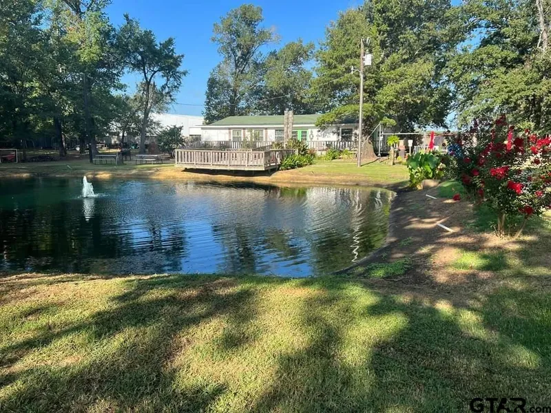 This property offers privacy from the hustle & bustle once you drive through the gated entrance flanked by two Old West miniature buildings entering the "Rose Of Sharon Ranch". In the front pasture is a 384' tiny home used as a rental/guest house (currently rented) & a stocked pond beside it. There is a large giant sun/brella covering for multiple uses near the pond & cabin. To the left of the drive is a fenced pasture which is currently home to a Lama & 4 Alpacas. The main residence offers a 5 bedroom, 3 full bath home, wrap around deck & is located far back off the main road overlooking a aerated larger stocked pond with walkout decking leading to a railed pier, perfect for fishing or sitting & enjoying the views while you have your morning coffee or in the evenings just relaxing after a long day of working with a glass of iced tea. You may even want to try your hand at fishing and see if you can catch a Catfish, Bass or Brim while letting the stress & worries from your day melt away. There is a fire ring, cooking area, various porch swings, tables, chairs and umbrellas which are perfect for entertainment or events and will convey with the property. Also, there are numerous shade trees throughout the completely fenced property to help with the summer heat here in East Texas. Plus at the back of the acreage is a 900 square feet metal building on slab w/utilities which could be used as a shop, party venue, storage, crafts, wood working or etc, possibilities are endless. In addition is a unfinished cabin with 640 sq ft, septic, breaker box & etc, but the interior needs to be completed. There also is a large Sulcata Tortoise in a fenced petting area with his own shelter home that is equipped w/heat lamp. The tortoise, lamah & alpacas have been the main attractions, but cannot forget about the play grounds & the experience of catching fish while celebrating birthdays at the "Rose Of Sharon Ranch" or enjoy daily your own private piece of heaven on a permanent basis.