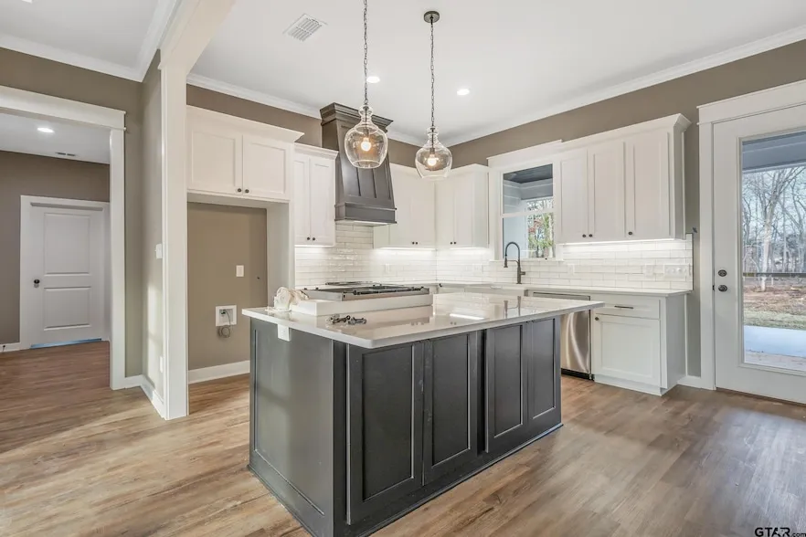This beautifully designed new construction home offers a crisp blend of contemporary elegance and traditional style. The exterior features a combination of brick, bat and batten and wood accents, creating an inviting and timeless atmosphere. The property sits on 1.394 acres of pristine land with views of Lake Tyler East. It offers endless possibilities for gardening, hobbies, or simply enjoying nature. Boat ramp access is right around the corner. There s ample space for adding a barn, workshop, or even a pool. Once you step inside, you will discover an open-concept floor plan with high ceilings and large windows that flood the space with natural light. The spacious living area, with its cozy fireplace, is perfect for relaxing or entertaining guests. The kitchen creates a warm and inviting environment with the sleek design and warm accents that accompany the space. A large butler's pantry...