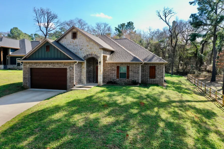 This home sits in a quiet neighborhood one street from the waterfront on Lake Palestine. You have views of the lake from the front of the house. 3 bdrms, 2 bath, 2 car garage. so many extras, heavy crown molding throughout, brick accent wall surrounding the wood burning fireplace in the family room. Beautiful hardwood floors, granite island in kitchen and baths, wood beams throughout ceiling. Mudroom with storage as you come in from the garage and laundry. Master bdrm with tray ceiling and beams. Master bath double sinks, granite countertop, walk-in shower, separate water closet. Built-in wardrobe. Spacious bedrooms with separate full bath, Granite countertop, plenty of storage tub & shower combo. Nice back porch sitting area. HOA restrictions, lovely street with nice homes.