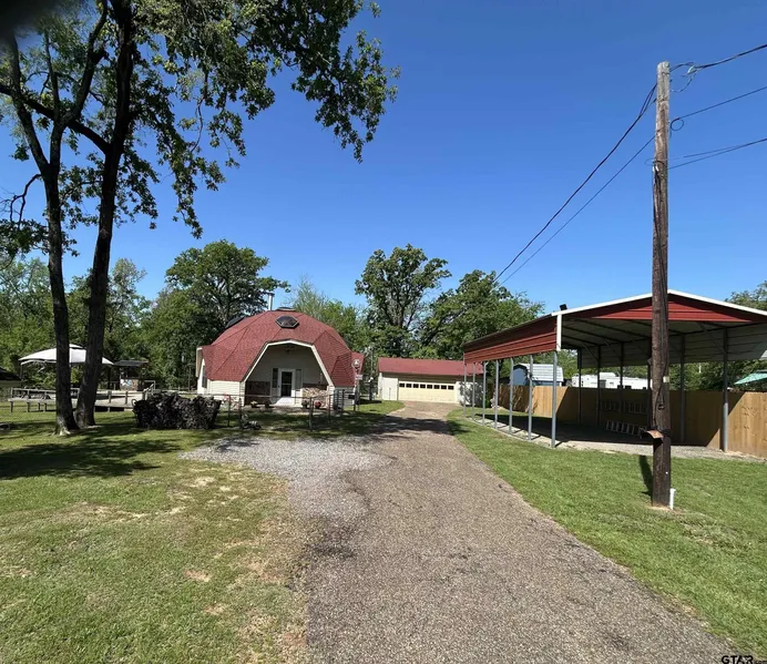 Geodesic dome homes are known for their strength, energy effciency and unique design and are highly structually sound also able to stand strong winds. Country Living at its best! 3 Br/ 2 Ba home is located on little over 1/2 acre. (.783). Approx 1700 sq ft. ,with RV Cover and beautiful deck on side of house. Located close to toll 49 for easy access to Dallas or Shreveport area. Also would be great for an Airbnb being located close to Lake Palestine and Airport. This is an open concept. Living room opens into kitchen. Spiral stairs lead up to 2 other bedrooms & bath. Master located down stairs with own bath and shower. Has a detached 2 car garage. Sets beautifully off main road. Plenty of storage in this home. A must to see!