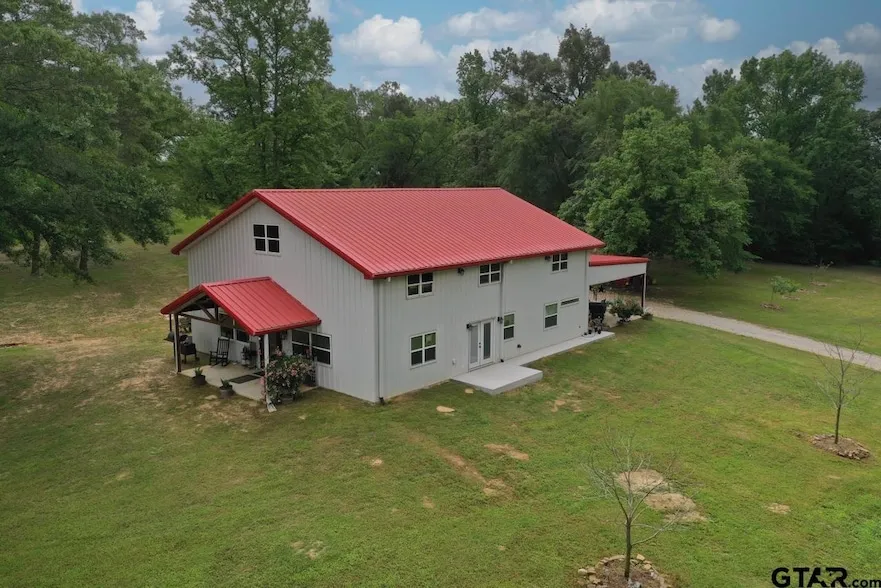 Discover the ultimate blend of country serenity and modern comfort with this dream gated property in Arp, Texas featuring two homes nestled on over 10 picturesque acres. The main residence is a custom-built barndominium set far off the road, offering privacy and over 3,700 square feet of thoughtfully designed living space. The main level boasts a spacious laundry room and half bath, along with a luxurious owner s suite. The suite includes a sprawling bathroom with double vanities, a soaking tub, a walk-in shower, a private water closet, and access to a massive walk-in closet. The heart of the home is an open-concept living area centered around a striking fireplace and seamlessly flowing into the dining area and gourmet kitchen. The kitchen features an island, stainless steel appliances, and a stunning butler s pantry that elevates both function and style. Also downstairs is a guest bedroom and an additional full bath with a walk-in shower. Upstairs, you ll find three more bedrooms one currently used as a craft room and another full bathroom with hookups for a second washer and dryer. The second residence, located at the back of the property, offers 2 bedrooms, 1.5 baths, and an open-concept living space with picturesque views from every window. Attached is a spacious 20' x 40' shop, ideal for storage or hobby use. This secondary home is currently income-producing through a furnished rental platform and can continue as such if desired. There is also an RV hook up! All this is just 20 minutes from the hospital district in Tyler, giving you the perfect balance of country tranquility and city convenience. This is more than a home it s a lifestyle.