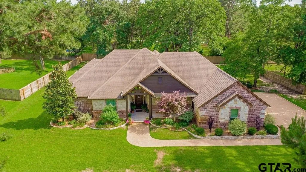 TRANQUIL EAST TEXAS RETREAT IN LINDALE Welcome to this stunning residence nestled deep in the majestic piney woods of East Texas. Situated on a peaceful cul-de-sac, this 4-bedroom, 2.5-bathroom home offers 2,797 square feet of thoughtfully designed living space. Step through the entrance into an impressive living area featuring soaring vaulted ceilings, elegant wood flooring, and a wall of windows that frame the beautifully landscaped backyard. The cozy fireplace with custom built-ins creates a perfect gathering spot for family evenings. The kitchen is truly a culinary enthusiast's dream! Showcasing a spacious island, stylish backsplash, and gleaming granite countertops, it's equipped with a professional gas stove and double ovens. The generous pantry and abundance of cabinets provide exceptional storage. The breakfast area accommodates a large dining table for casual meals and entertaining. A versatile office with an adjoining half bath sits conveniently off the kitchen, while upstairs you'll discover a bonus room perfect for media enjoyment or guest accommodations. The primary suite offers a luxurious retreat with a spacious bathroom featuring separate sinks, a dressing vanity, soaking tub, and walk-in shower. The impressive closet connects directly to the laundry room—a practical touch for busy households. Additional bedrooms are generously sized and share a beautifully appointed bathroom. Outside, enjoy morning coffee or evening relaxation on the oversized covered porches. The meticulously maintained yard provides a serene backdrop for outdoor living. Very important... water well for watering your yard!!! This exceptional property combines countryside tranquility with convenient access award winning Lindale Schools and local amenities. Visit Miranda Lamberts Pink Pistol, Lindale Candy Co, Ponderosa Pourhouse, LaCascio's Scratch Italian, Texas City Music Grill and more !