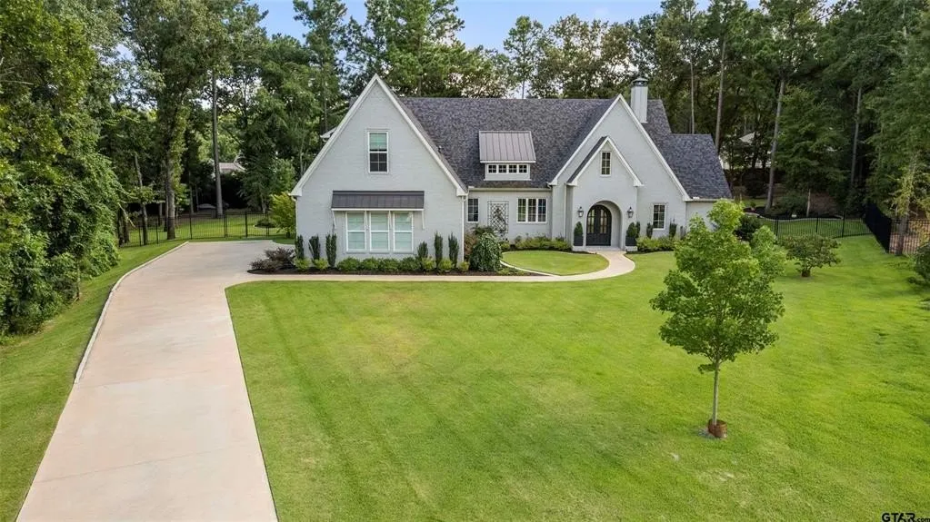 Privately situated within a peaceful double gated neighborhood in the heart of Tyler, this 2023 custom built estate is a rare offering that combines architectural elegance with refined sophistication. Every detail has been thoughtfully designed, showcasing a harmonious blend of craftsmanship and comfort including 4 bedrooms, 3 full bathrooms, and 1 half bath. Every detail of this home has been thoughtfully designed including quartzite and marble surfaces, marble flooring, rich hardwood floors, designer lighting, soaring vaulted ceilings adorned with custom wood beams. A gas fireplace with a cast stone surround and custom built ins further enhance the inviting yet elevated living spaces. At the heart of the home, the chef’s kitchen combines style and sophistication with a built in refrigerator, custom Italian inspired cooktop and oven, expansive island with bar seating, butlers pantry, and a breakfast room framed by custom built ins. Antique doors and vintage inspired touches add character throughout. The primary suite offers a retreat like atmosphere with vaulted ceilings, French doors leading outside, and a spa style bath featuring marble floors, dual vanities, a garden tub, marble walk in shower, and a spacious custom closet. Designed for both everyday intimate living and grand entertaining, the outdoor setting showcases a resort style pool and spa surrounded by lush professional landscaping and accent lighting. Resting on over an acre at the end of a quiet culdesac, the property provides a rare sense of privacy and serenity. Additional highlights include a large laundry and mudroom, Generac generator, two car garage with heated and cooled workspace, a custom bunk room with built in beds, an upstairs game or family room, bonus exercise studio, and a dedicated home office. Blending luxury, comfort, and thoughtful design, this exceptional property captures the essence of fine living in one of Tyler’s most desirable locations.