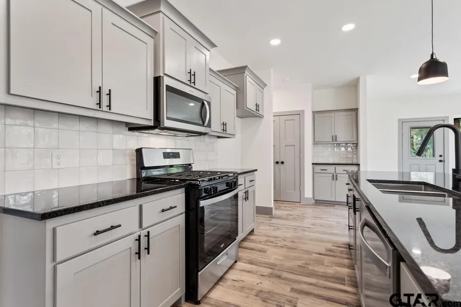 Merry Christmas! The builder is offering a $10,000 Buyer Bonus now through December 31st! Why settle for boring when you can have brand-new construction in Lindale ISD with all the bells and whistles? This 1,900 sq. ft., four-bedroom, two- full bath, two-car garage beauty comes loaded with upgrades that most “builder basics” can only dream about. From the moment you walk it, the designer lighting fixtures tie the space together with a warm modern glow. From the stunning interior colors with gray trim and cabinetry (absolute chef’s kiss) to the open floor plan with tray ceilings and recessed lighting, every detail was built to impress. The kitchen is a caffeine-lover’s dream with a custom coffee bar, granite countertops, stainless steel appliances, and a gas stove, because cooking on electric isn't as much fun. The primary suite is just as extra, with a tiled walk-in shower, added linen closet plus a spacious walk in closet. Both bathrooms offer dual vanities, and defogging mirrors with built-in lighting that make getting ready feel like your own glam station. These bathrooms bring a little attitude with kick lighting, because sometimes we don't need all that extra light for business. Smart-home features include a remote-controlled garage door opener and thermostat, all right from your phone, translation: you can boss your house around without leaving the couch. This home is positioned on a quiet street, on a lot that backs up to a creek and mature trees for privacy and shade, with a privacy fence on both sides. This newer neighborhood has concrete streets, sidewalks and streetlights, and even a pond so it feels like a Hallmark movie, with neighbors walking their dogs, and children safely riding their bikes. Best of all, there’s no HOA breathing down your neck, just enough deed restrictions to keep it clean and tidy. Don't snooze on this one! If you want brand-new, stylish, and a little bit sassy, this is it!