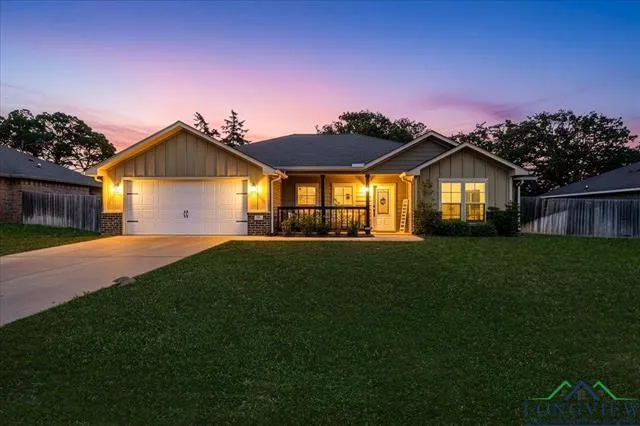 Welcome to this charming 4-bedroom, 2-bath farmhouse-style home in Lindale, TX! This home is such a cutie with plenty of character and comfort. Enjoy your morning coffee on the cozy front porch, then step inside to an inviting open-concept layout where the kitchen, dining, and living areas blend seamlessly together, perfect for staying connected with your loved ones! Imagine cooking dinner while watching your kids play or catching your favorite show with the family. The spacious primary suite offers a relaxing retreat with an ensuite bathroom featuring double sinks, a large walk-in shower, and an expansive closet. The additional bedrooms provide flexibility for a growing family, a home office, or a welcoming guest space. Step outside to a covered back patio and fully fenced yard, ideal for cookouts, gatherings, or peaceful evenings under the stars. A storage building adds extra convenience for all your tools, lawn equipment, or hobbies.