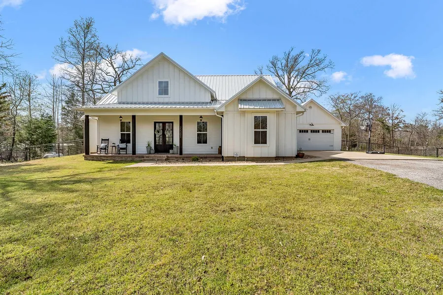 Situated on 5 acres between Lindale and Van, Texas, this lovely home with 4 bedrooms and 3 baths combines luxury with a farmhouse feel. Inside, high ceilings, upgraded appliances, and carefully chosen colors make the house stylish and cozy. The master bedroom and bathroom are spacious and separated from the other bedrooms. The other rooms have lots of space and large closets, and there's an extra room with a full bathroom for guests located on one side of the home. For safety during storms, a new shelter has been added in the big garage. The house is well-cared-for and ready to move in. Outside, there's a covered back porch and plenty of room for activities. And don't forget the insulated shop with water, electricity, and RV hookup. It's a country-style home with all the conveniences. Don't miss your chance to own this beautiful property in Lindale ISD!