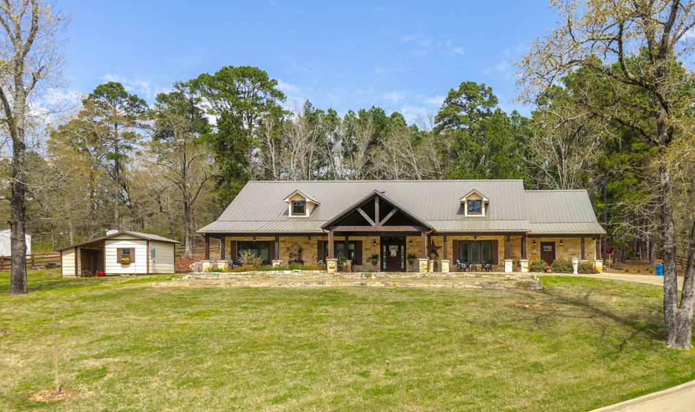 Looking for a Ranch Style Home on 1.486 Acres? This home just looks and feels like a Southern Living Home. When you enter through the gate, the drive is just gorgeous. Just look around. I love land, and views! The front porch is entertaining, room for rockers, and relaxing. The back patio is OMG...flagstone patio with pergola. Covered patio plus open air patio. The landscaping is remarkable. This seller knows how to make a home come alive! It is warm and comfy. 3 Bedrooms, of which 2 could be masters, 3 baths, and a 3 car garage. Gormet Kitchen, copper accents, beautiful copper farm sink, granite and a gas range. Lots of storage in this home! Seller has updated these items: 2018 Metal Roof with dormers added , Cedar shutters added to the front windows, Claw foot tub installed in Master Bath 2019, Backyard landscaped and patio placed Nov 2018, Front landscaped 2018, Light fixtures added in family room. Aerobic Septic. Minutes to Tyler and shopping. Great location. You have to come see and buy this Happy Home!
