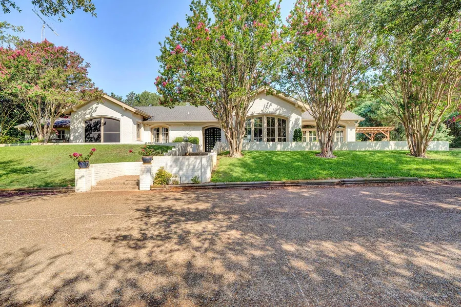 Beautiful single-story living, this home is an entertainer's dream. This open concept home features hand-scraped wood floors and Saltillo tile. There is a floor-to-ceiling stone fireplace in the great room with plenty of windows. The large main bedroom offers its own stone fireplace, new carpet and french doors with screens that overlook an outdoor patio toward the front of the house. The main bath features a large walk-in closet and wall-to-wall cabinets. There are 3 more bedrooms, one with an attached bathroom and two more which share a large full bath that opens to the backyard and pool area. In the beautifully landscaped backyard there is an in-ground pool with cover, waterfalls, a slide and a detached saltwater spa. The property also features a carriage house situated above the 3 stall garage with a kitchen, living room, full bath and separate bedroom large enough for a king sized bed plus its own entrance. At the end of your 1500' private driveway there is a 2 story cedar-sided home with a 2 car garage and a large covered patio overlooking a creek fed pond full of fish. This home includes an updated kitchen, family room and 1/2 bath on the first floor. Upstairs is a bedroom, full bath, loft/bedroom and a large game room. You can access the second story from the stairs inside the garage. The property also includes a large 2 story barn, a garden area and shed for your gardening implements. Don't miss out on viewing this beautiful property with 35 acres of land. Country living only 15 minutes from Tyler with all the shopping and restaurants you could need. All equipment and home furnishings can be negotiated.
