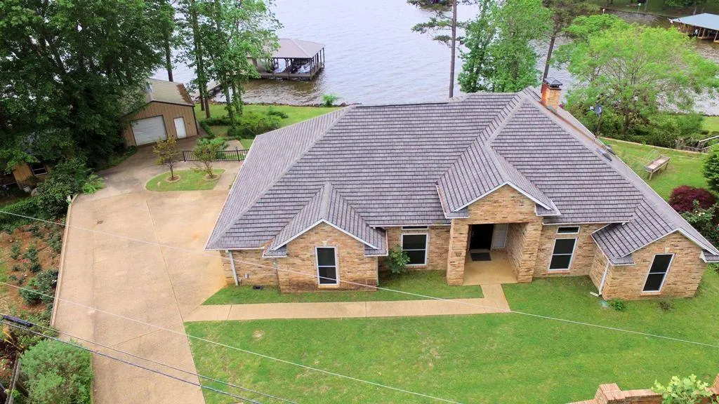 Charming home on the shores of Lake Palestine! Beautiful panoramic views of the lake, open floor plan, WBFP, and vaulted ceilings. Natural light throughout the home with a beautiful formal dining, granite countertops, & SS appliances. Master area located privately & you can wake up each day gazing at the lake. Garage converted into a game room/man cave complete with bar/kitchenette area, granite counters, full bath & an exit door. Open & covered patios in the back yard perfect for entertaining & cooking out. You will love the new 2016 boathouse with plenty of deck room, double stalls & storage room. There is also a 24 x 30 metal building. This home offers it all & won't last long. Spend the summer enjoying barbeques, skiing & fishing. Come look & Welcome Home!!