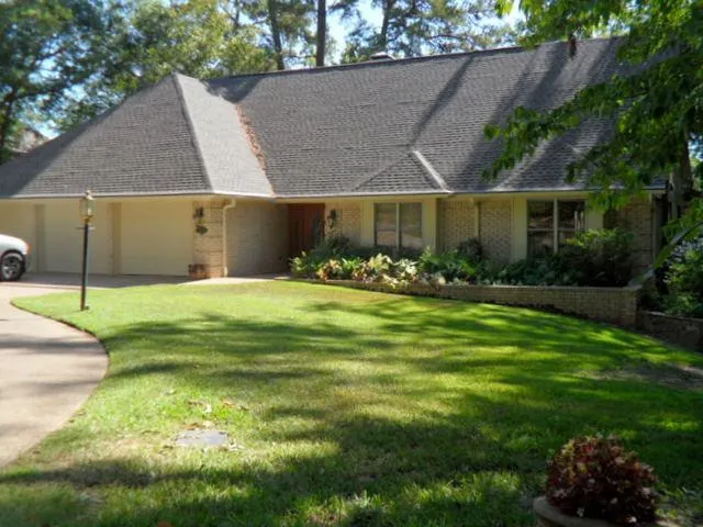 FANTASTIC WATERFRONT HAS IT ALL! 2 lots replatted for 1 initiation and dues. Great drive-up appeal, circle drive. Quality custom-built. Living room features rock WBFP, 2-story ceiling, wall of windows to lake. Kitchen/breakfast room overlook lake. Master suite down with glass doors leading to deck - view of lake. Elevator or stairs to second floor - 2 bedrooms/2 baths. Wired for surround sound. Deck features 3-ton A/C, mosquito misting system and TV. Garage has cabinets, storage closet and workbench. Hot tub on separate deck in back yard. Boat house has lift, storage and slide. Gorgeous landscaping with flagstone all around in-ground and on flower beds. MUST SEE.