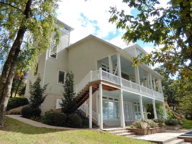 Breathtaking waterfront property on peninsula with approximatly 426' of shoreline! This 4248 sq. ft. home is light & bright with 3 bdrm, 3 bath. Open living (WBFP)/dining/kitchen & guest bedrooms on main floor. Game room with full bath and bar area on lower floor opens to the landscaped pool & hot tub. 3 car garage and basement with garage door providing incredible storage! Huge master suite covers 2nd floor with wall of windows, remote control curtains & incredible views of Lake Palestine! Bonus Room off Master Bath can be used as Exercise Room, Office, or Nursery. Existing boathouse located on south side of peninsula provides one electric lift and extra lot north of property provides space for large boathouse and/or guest cottage. Level lot is perfect waterfront space for volleyball, shuffleboard & more! With approx. .72 acres above the 355' elevation, your family and friends have plenty of space to enjoy this fabulous waterfront beauty!