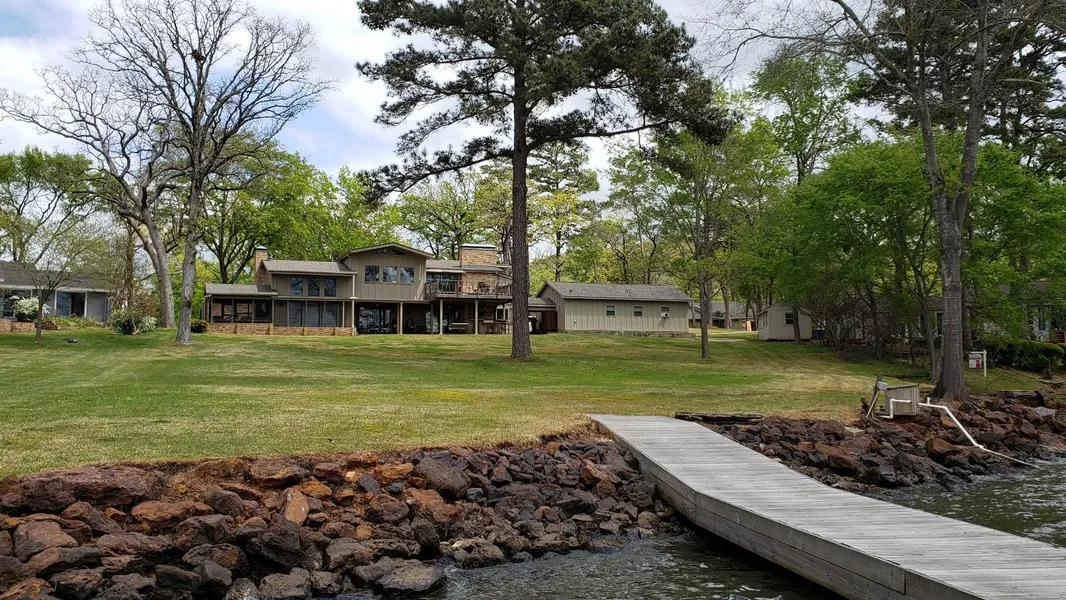 Waterfront home on tree shaded, landscaped double lot in Cumberland Ridge! Home has been completely updated. Porte-cochere with storage, open living & dining areas with WBFP, built-in bookcases, & vaulted ceiling, an inviting kitchen /keeping room with a WBFP, & an oversized utility/butler's pantry with add'l oven, refrigerator & sink plus tons of storage. Downstairs has one bedroom bath plus half bath off living area. 2nd level & open loft area with hall to guest bed & bath. Spacious master suite located upstairs on lakeside, with WBFP & private deck. Two story sunroom at east end of home has lift/elevator between main level & 2nd floor & is accessed from keeping room, utility room or master bedroom. Private side patio & screened porch accessible from living area. Additional patio with outdoor kitchen on back of home. 120'+ shoreline, facing SW. Separate oversized 3 car garage with window a/c unit has tons of storage space & bathroom plus convenient outdoor shower stall! Boathouse has 2 slips with electric lifts plus add'l single jet ski lift & storage. In Bullard ISD. Let your lake life begin!