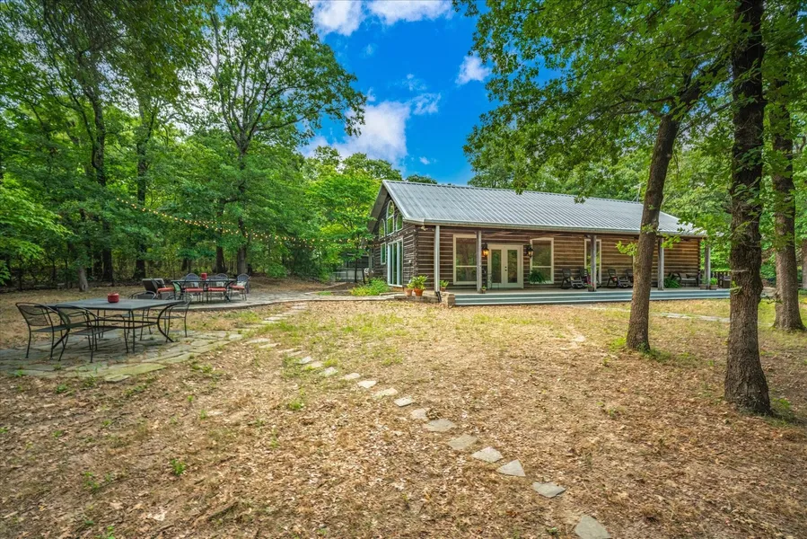 Incredible CUSTOM French Country Square Log 2-Story home nestled in 3.4 acres of woods with very private rd. access. App 2400 sf, 3bed-3bath, 2 living areas, study, master w- sitting & elec FP. Home offers stunning windows reminiscent of mountain homes. Open floorplan*cathedral ceiling*Great Room*stone gas FP*custom wood counters*huge wood island eat in island, copper farmhouse sink. 2nd floor offers loft living area & bedroom-en suite bath. Flagstone patios & fire pit. HUGE covered porches front & back. 2car carport, storage bldg. Custom play unit. Want private but modern, and close to shopping, this is it! Note: the 1 mile private rd off CR 448 is dirt-sand w- wooded & pastoral views. Perfect for long walks!