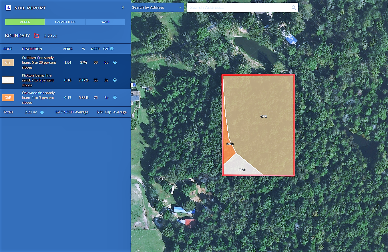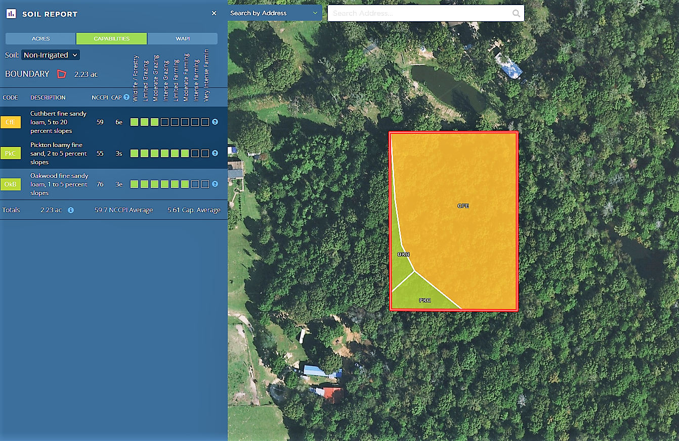 Search for detailed parcel information including; Elevation & Vegetation Maps, Ownership Information, Detailed Parcel Information, Crop History Map, Soil Survey Productivity Data, and more.