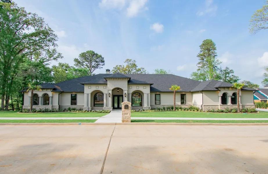 A MUST see masterpiece located in the Fairview Estates of Eagles Bluff! This 4/4.5/4 Mediterranean-Modern WATERVIEWHome on the golf course in Eagles Bluff has breathtaking views of the private club lake and course. The open floor conceptincludes a living area that features a soaring fireplace with built-ins and an 85" tv. The views are spectacular from the floor toceiling windows overlooking the golf course and views of the lake. Gorgeous kitchen with custom cabinetry, oversizedbreakfast bar, stainless appliances, including the 5' refrigerator and more for great family gatherings. Each unique bedroom isa Suite with it's own bath. The vaulted ceilings, exclusive office/study, billard room, safe room and 4 car garage with workspace are just some of the additional touches. The billard room kitchenette includes ice machine, wet bar and frig. Enjoyentertaining outside w/the full size outdoor kitchen and grill, or relax on the open patio/fireplace w/70"big screen TV. Theamenities are exquisite in this home, surround sound and internet coverage throughout home, patios, and fenced yard. Thissealed envelope home has spray foam insulation throughout including garage. Control your audio on smart phone but alsohave control centers in each room. In the garage there is an attic lift (750 lb.) for easy access of all your holiday decorations.Two Rannai tankless gas water heaters with on demand hot water. Outside is ready wired for pool, hot tub and generator.Central vac throughout, water filter/softener w/10 yr no maintenance that filters entire home. Let this be your forever estatehome and enjoy the amenities of Eagles Bluff Country Club and golf course