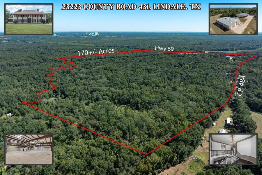 Welcome to this extraordinary colonial-style estate, on 146+- pristine acres of East Texas countryside. Offering 3 spacious beds, 3.5 baths, two massive & well constructed 100x80 workshops, 453 SF apartment or office with bathroom, concrete driveway connection workshops and home, all surrounded by trees for privacy and seclusion. Just off Hwy 69 for convenient commute to DFW or Tyler! Bring your homestead plans, business, event venue, or anything you can imagine in the highly popular location of Lindale, TX. Be welcomed with beautiful woodwork & architectural interest inside & out with a combination of modern, classic & timeless finishes highlighted by loads of natural light. Gourmet kitchen is a chefs dream, featuring ample cabinetry, SS appliances, granite & breakfast room. Luxurious primary suite provides tranquil retreat w spa-inspired bathroom & huge walk-in closet. Each large bedr...