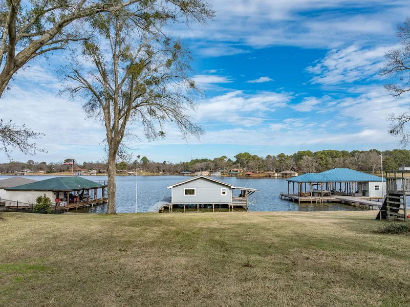 open side deck for fishing, grilling, or sitting peacefully lakeside! A metal roof and vinyl siding makes maintenance easy. Water depth is approximately 5-7' across back of boathouse when lake is at full pool. Build the lake home you have always wanted on beautiful Lake Palestine! Sprinkler system pumps from lake. Bullard school district.