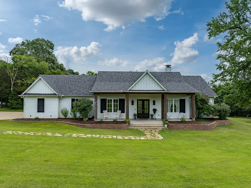 Welcome home to perfection in Bullard, Texas, south of Tyler! This custom built gem by Steven Phillips offers a generous 2668 sq. ft. of living space, featuring 4 spacious bedrooms and 2.5 baths, all perfectly situated on 9.336 picturesque acres. As you approach, a stone path leads from the driveway to the inviting front porch with double doors opening to the welcoming entry hall. Inside, you will find the perfect study/office that provides work from home ease, with fiber optic internet (also can be used as 4th bedroom). The expansive family room with WBFP flows effortlessly into the dining area and a spacious kitchen, perfect for entertaining. The kitchen boasts a breakfast bar and plenty of storage plus KitchenAid appliances including a double oven, gas cooktop, dishwasher & microwave. Additional amenities include a microfiber filtration system with reverse osmosis at the kitchen sinks...
