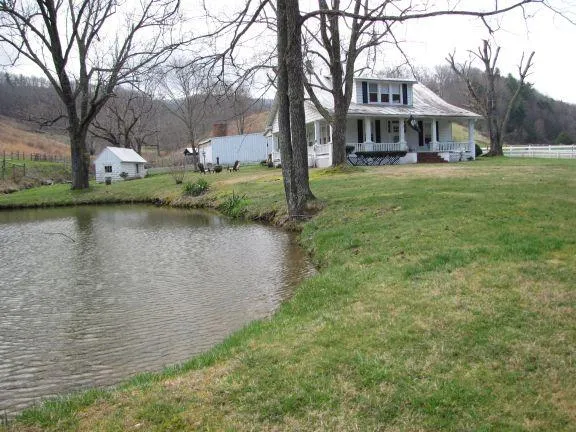 Horse lovers dream! 52 acre farm with rolling pastures that's nestled against Jefferson National Forest with numerous trails to horseback ride or hike. Charming 4 bedroom 2 bath two story farm house built in the early 1900's with over 1800 sq ft of space. Bedroom and bath on the main for 1 level living yet 3 bedrooms and bath upstairs for guests or the rest of the family. After a long days work, settle down on your wraparound porch that over looks your spring feed pond and watch deer and turkey in the pasture. Kitchen over looks pasture with cozy breakfast nook beside the wood stove. pocket doors separate the living room from the dining room with both over looking the pond. Home has all original hardwood floors with parkay flooring at the back entrance. Walk your property for breath taking views or sit on the wooden bridge and listen to the water rolling down out of the mountain. This is 1 of 3 streams with trout! This farm is priced to sell!