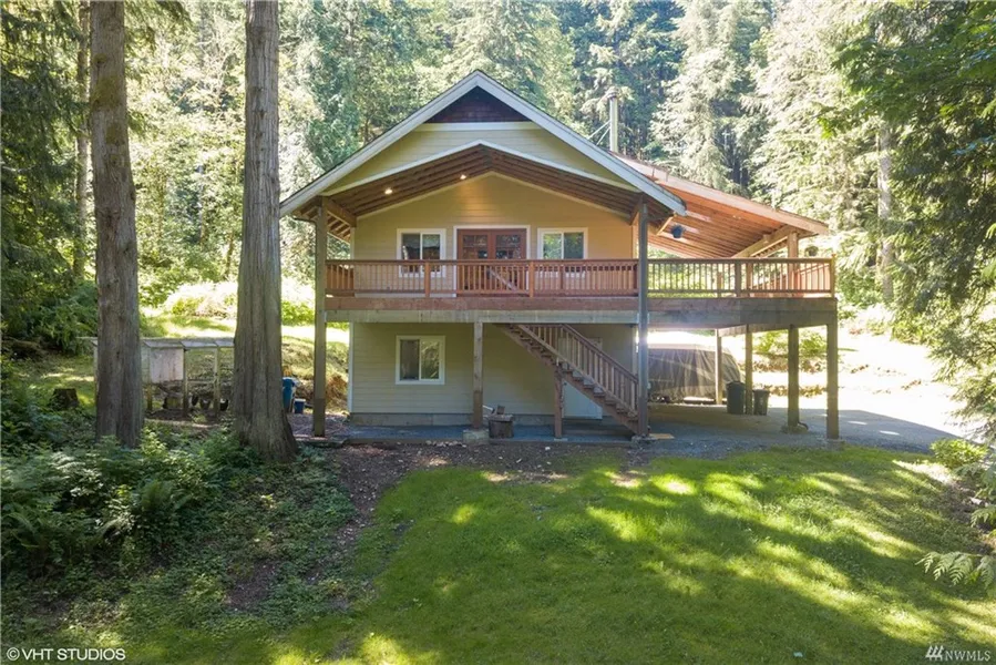 Peace & Tranquility on shy 5 acres, ready for you to move in and enjoy. Unique 2 bedroom, extra wide/deep 2 car garage, and amazing 14x40 mostly covered deck adds a huge outdoor living space which is perfect to enjoy the beauty of this property. 6 bedroom septic and water in place in case you'd like to build on to the existing home, or build the home of your dreams (buyer to verify what is possible). All appliances included + 1 year home warranty. Do Not Miss This Opportunity - welcome home!