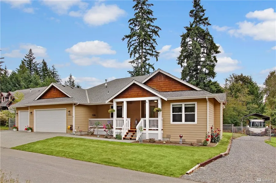 Beautiful Craftsman style Rambler on private shy half acre lot! Relaxing covered front deck. Tall ceilings, Gleaming real hardwood floors with a Open floor plan. Large kitchen lots of counter space & stainless appliances. Good size master bedroom with walk in closet and 5 pc. bath. Wonderful covered deck overlooking the tranquil private backyard with firepit, horse shoes and privacy. RV and More parking, Storage building. NO HOA!
