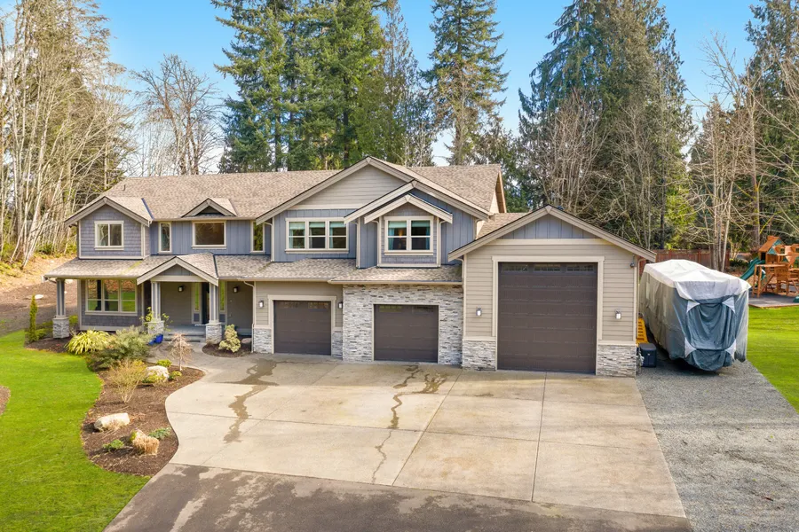Exceptional custom-built home on two secluded acres surrounded by natural beauty and within walking distance to the lake. From the grand entryway, youll find a great room with a beautiful stone gas fireplace and an abundance of windows throughout the home for plenty of natural lighting. A gourmet kitchen, 3/4 bath, bedroom and office on the main floor offer added convenience. Relax in the gorgeous upstairs primary bedroom with a spa-like en-suite and a balcony for taking in the outdoors. Two covered outdoor decks piped with gas and water and 1,500 square feet of garage space with a 14 ceiling RV storage bay complete this impeccable property.