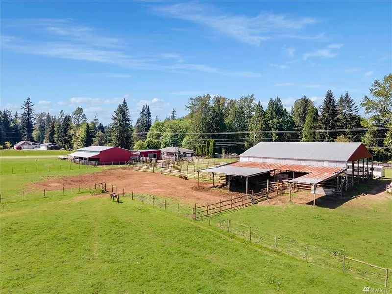 Horses dream of being here!60x72 covered arena with 16 foot high ceiling, 2 barns w/ stalls(11 total covered stalls) + outbuildings + 46' wide lean-to shelter w/ feeding area next to the arena. Completely fenced and cross-fenced w/ several paddocks & pastures. Multiple storage sheds, gated entry to area w/ office/shop building. Great venue for lessons/classes, demonstrations, seminars. Perfect for farm business, hay deal, tack repair. Park-like property. Ready to be a boarding facility. Cute 3+ bedroom home w/ family room + separate garage. Wonderful home w/ living room & country family/dining room.