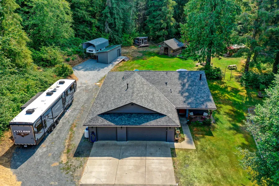 Beautifully maintained and updated farm house rambler nestled in a quiet cul-de-sac backing to the community owned greenbelt with separate private river trail (Pilchuck). Let the day melt away as you walkthrough the French doors onto your large trex deck, overlooking your 1.06 acre lot complete with large woodshed, partially remodeled cabin, chicken coop, fruit trees, raised garden beds, dog run, outdoor adventure shed and koi pond. RV carport with sewer, water, and 30amp hook ups. Cool off in the above ground pool or soak your aches and pains in the hot tub. Retire to your oversized master and charming spa like en-suite. New roof, carpet and LVP flooring, paint inside and out, house is wired for generator and the 12 watt Subaru eh63 generator included.