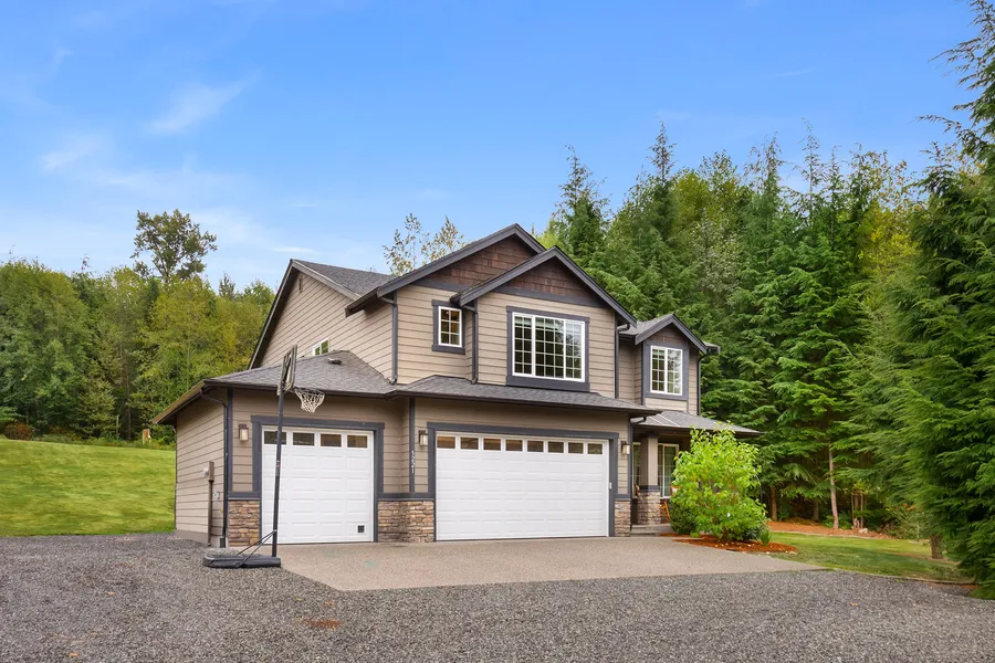 Stunning home situated on just over an acre in a gated community. Tucked at the end of the road & backed to greenbelt. Handscraped engineered hardwoods expand throughout the main living spaces. French doors open to your main level den with built-ins. You'll pass the dining room, half bath and garage access as you enter the kitchen. Great kitchen with granite counters, walk-in pantry, & island overlooking great room highlighting a fireplace. Upstairs you have two guest rooms, laundry, bonus nook, large flex room & master suite. Vaulted ceilings in the master with a walk-in closet & 5-piece bath. Entertain in your massive rolling yard featuring a stamped concrete patio, hot tub, & firepit. Ample parking with enough space for an RV & boat!