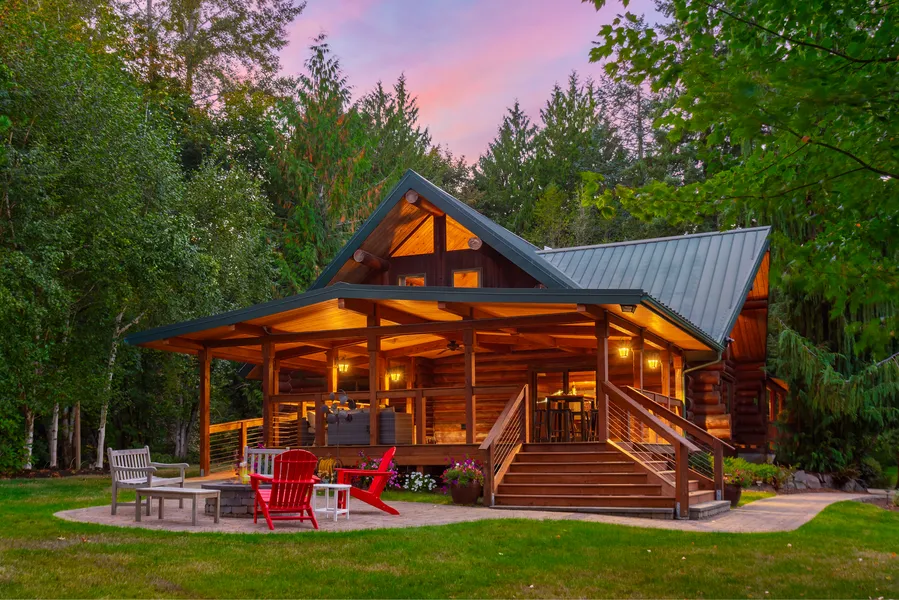 Custom log construction estate on almost 2.5 acres of peaceful land. Barn incl. stables, feed & water system, and flex rooms on the upper level. Oversized 3 car detached carport matches construction of the main house. Follow the slate walkway to entry and notice the soaring ceilings and stunning details. Natural light beams in through the several triple pane windows. Cozy stove heats up the main living spaces and rises to the loft/bonus area upstairs. Great kitchen with JennAir stove and ample storage. Radiant heat on main floor and Master. Main level has dining room, 2 bedrooms, and mud room. Upstairs you'll find the bonus room/loft and master suite. Enjoy your massive covered deck to enjoy year round with fruit trees and plenty of room to roam in yard.