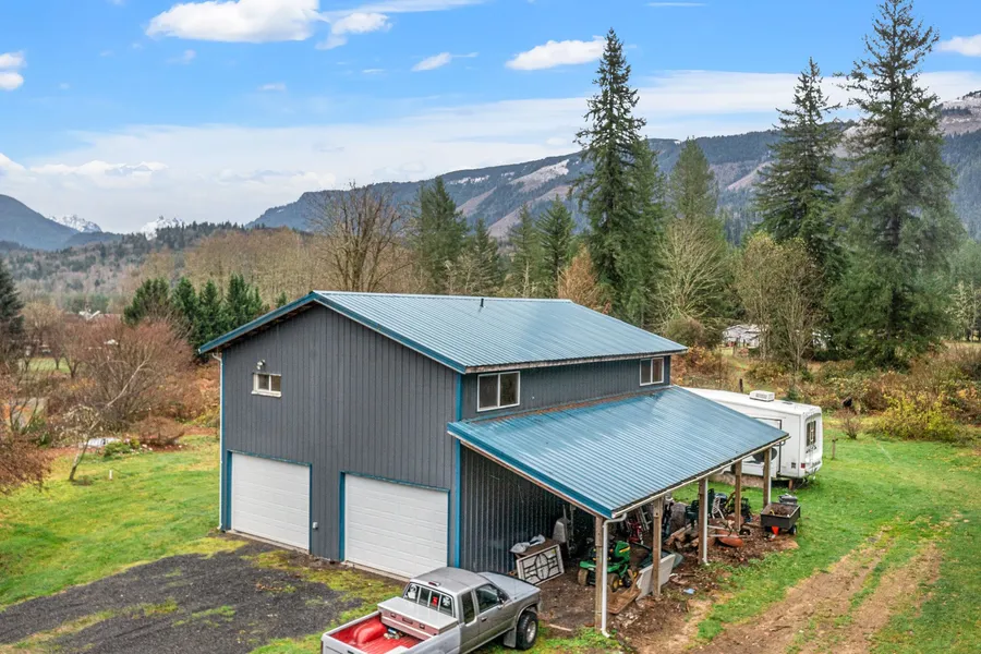 MOUNTAIN VIEW + 5 ACRES. A perfect mix of living quarters & a place for fun in this Barndominium, designed to incorporate a home with a workshop/ large garage below you! Experience loft style living while you get ready to build your dream home. 2 Beds, 1 bath & open floor plan w/ natural light & gorgeous views from your living room! You'll love being part of the OSO community, and you're only 20 minutes from Down town Arlington! QUIET & SECLUDED. living quarters will be finished prior to closing, This is a good one!