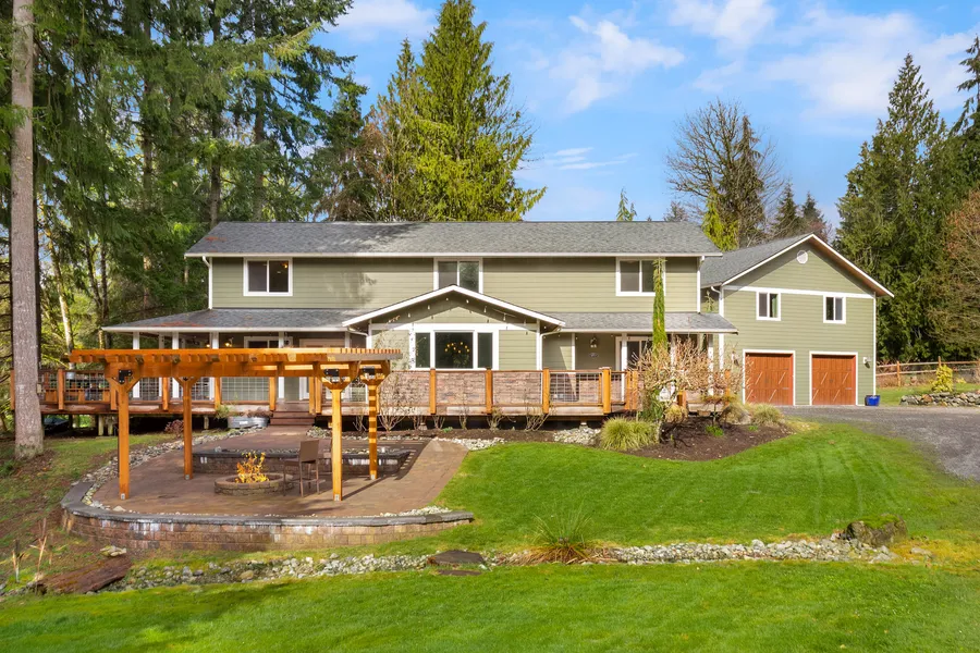 Tucked at the end of a private road youll find this stunning property sitting on over 5 acres, with private access to over 400 acres of DNR land. Meticulously maintained home that was completely renovated down to the studs. Relax and enjoy your peaceful private sanctuary on your teak wrap around deck or hang out at your beautiful brick fire pit. Gourmet kitchen with quartz counters, solid wood cabinets, double oven, induction cooktop, overlooking the living room with a custom wood mantle. The perfect space for entertaining. Two spacious primary suites, one on the main level and one upper with a spa-inspired ensuite featuring a Japanese soaking tub and walk-in shower. Covered Deck is great for year-round entertaining with walkway to access your Mother-In-Law which boasts a large living room, kitchenette, bedroom, and full bathroom. This would be a great space for out of town guests for extra privacy or create the ultimate entertaining space with a theater, game room, or even a work at home space. Bring your RV, boat, hobby cars, projects to the 40x40 shop with 220v power. Home is wired for generator and surround sound. This is a true retreat with so many amenities on your own property.