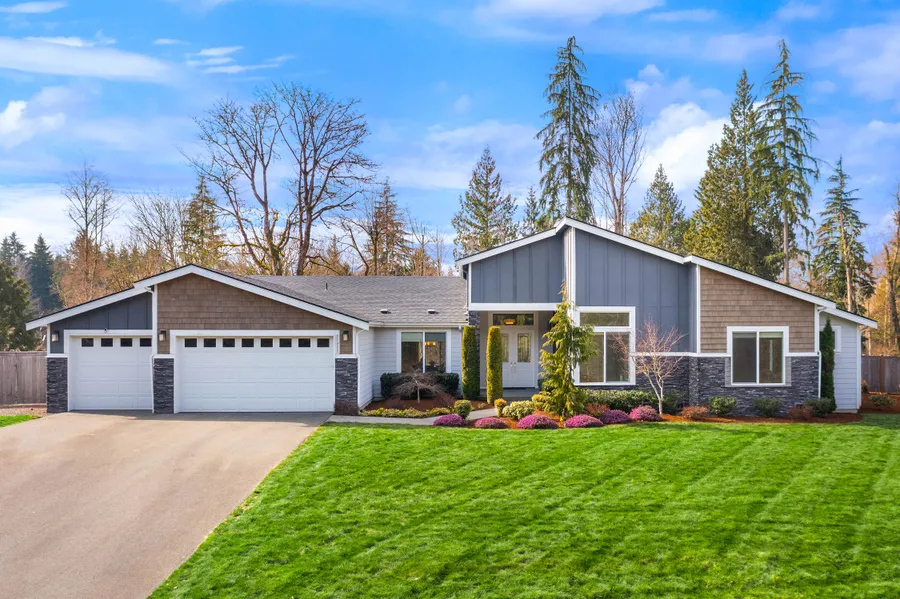 This exceptional Echo Lake rambler offers a spacious floor plan, vaulted ceilings, and many high-end details. Step inside double doors to the light-filled foyer, into the great room and gourmet kitchen. Stainless appliances, a walk-in pantry, and an island with breakfast bar seating await, with a large living area and gorgeous gas fireplace to warm the chilly nights. Separate laundry and mud rooms give useful storage and the office is perfect for work or school. The luxurious primary bedroom features a walk-in closet and spa-like ensuite. Relax outside on multiple patio areas or take a soothing sauna. An expansive 3 car garage has room for all your projects and more storage, while the fully fenced one-acre lot offers space and privacy.